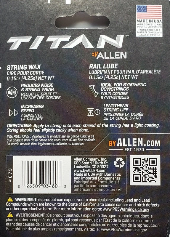 Allen Titan Crossbow String Wax & Rail Lube 673