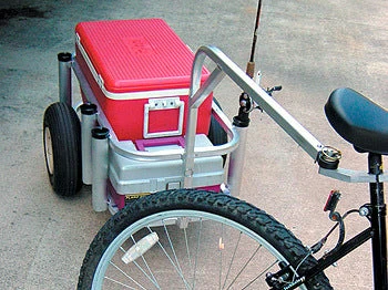 Anodized aluminum rack designed to transport the Fish-N-Mate carts with your bicycle. This all aluminum device easily mounts to the seat post of your bike. An adjustable bracket is provided for different size seat posts.