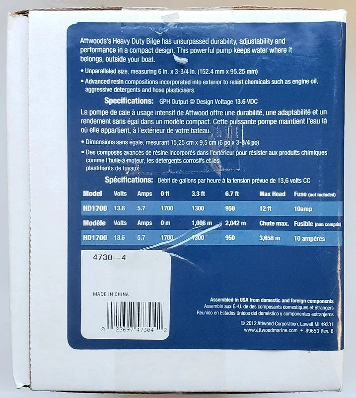 Attwood HD1700 Heavy Duty Bilge Pump 4730-4