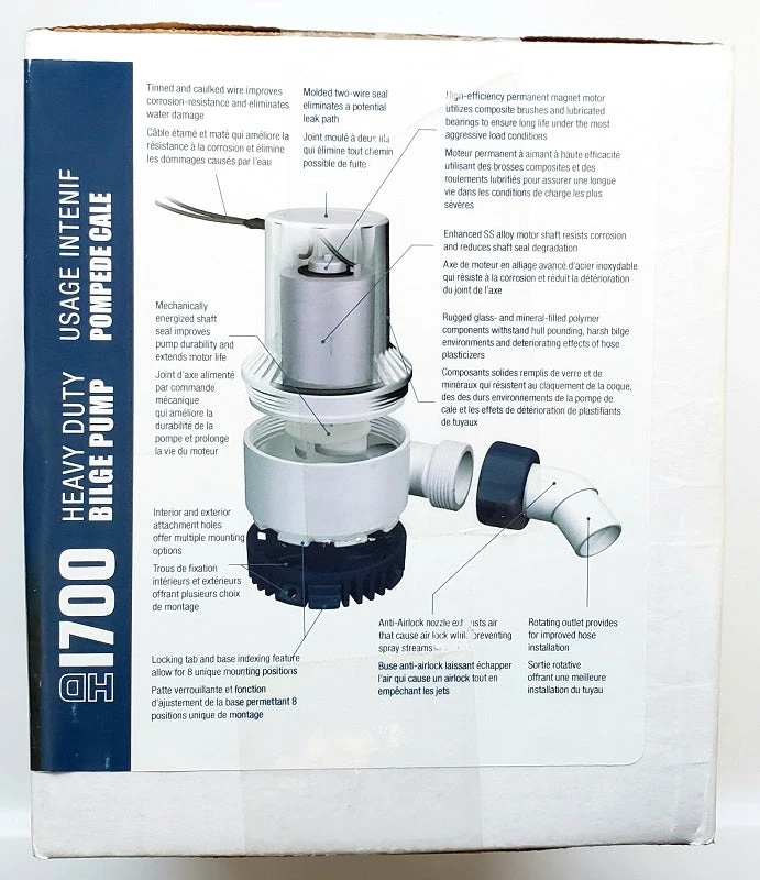 Heavy-Duty Bilge Pumps integrate the highest quality bearings, brushes, alloys and magnets designed to withstand extreme usage cycles. Pump all employs an exclusive shaft and motor compartment, reducing wear and significantly extending pump life. Advanced resin compositions incorporated in exterior to resist chemicals such as engine oil, aggressive detergents and hose plasticizers. Attwood’s Heavy Duty bilge has unsurpassed durability and efficiency in a compact design to ensure electrical energy is converted to the pump rather than excess heat.