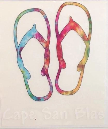 Multi color flip flops, white letters, 41/2″ x 51/2″Â