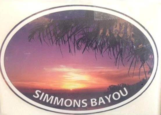 Full color oval sunset scene w/ white letters, 5″ x 31/2″Â
