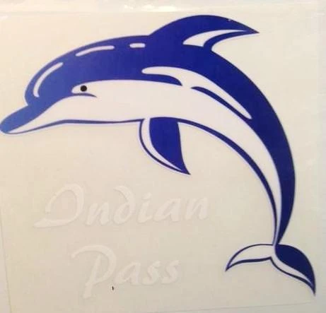 Blue/White Dolphin, white letters, 41/2″ x 41/2″Â