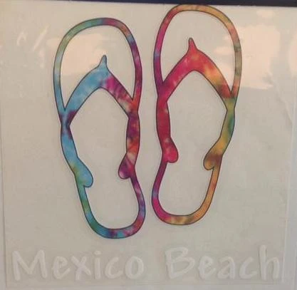 Multi color flip flops, white letters, 41/2″ x 51/2″