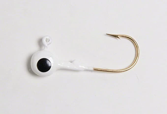 Original design hand painted eyes, with gold hook w/barb to hold lure on hook.