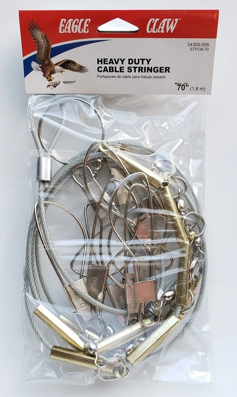 The Eagle Claw Heavy Duty Cable Stringer is perfect when you are out fishing. It is 70-inches in length and features 10 heavy duty clasps for holding your catch!
