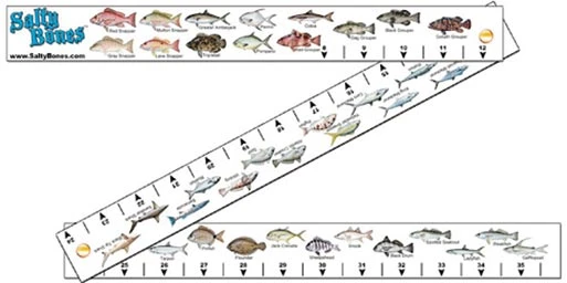 This ruler shows fish length restrictions based on Florida rules. Made of durable plastic with the printed areas laminated and UV resistant, this is the perfect companion for your next fishing trip.