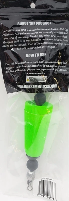 Four Horsemen Tackle Concave Popper Cork Green 3″ 1pk