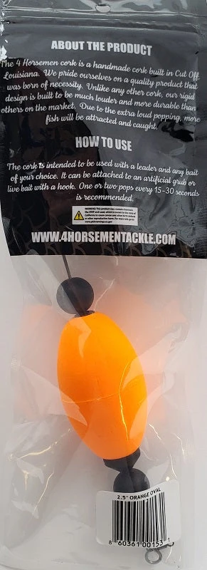 Four Horsemen Tackle Oval Popper Cork Orange 2-1/2″ 1pk