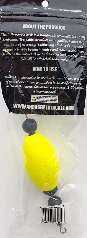 Four Horsemen Tackle Oval Popper Cork Yellow 2-1/2″ 1pk