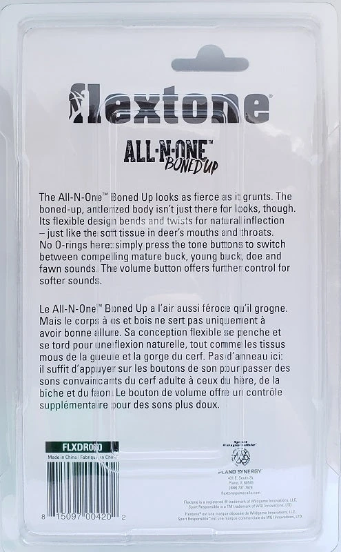Compact deer call is easy to carry. Simply blow the call for buck grunts or hold down the buttons for fawn bawls, doe bleats, and young buck grunts. Flexible body allows for changing of volume and tone.
