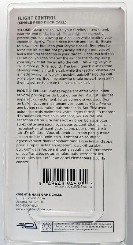 Knight & Hale Flight Control Single Reed Duck Call KHW1008