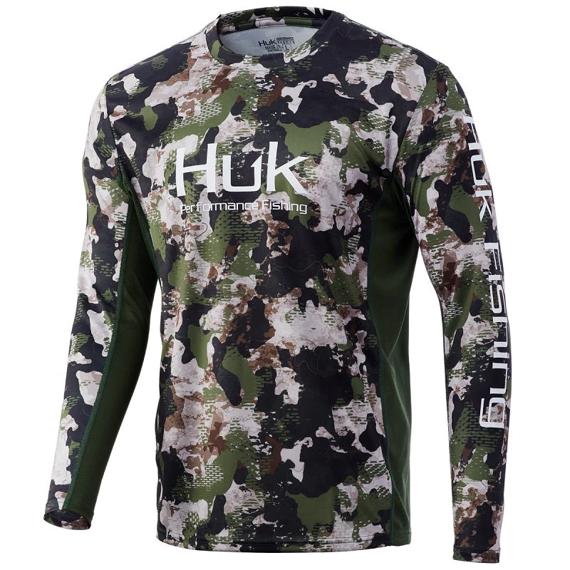 The Huk ICON X Refraction Camo Shirt, featuring our new exclusive camo pattern, is the most technically advanced performance fishing shirt designed for hardcore anglers. This breathable material spreads moisture over a larger surface area, creating a rapid drying effect that cools the body after coming into contact with perspiration. The synthetic fibers allow air to pass through the shirt and contain a hydrophobic coating that transports sweat to drier areas, away from the skin.