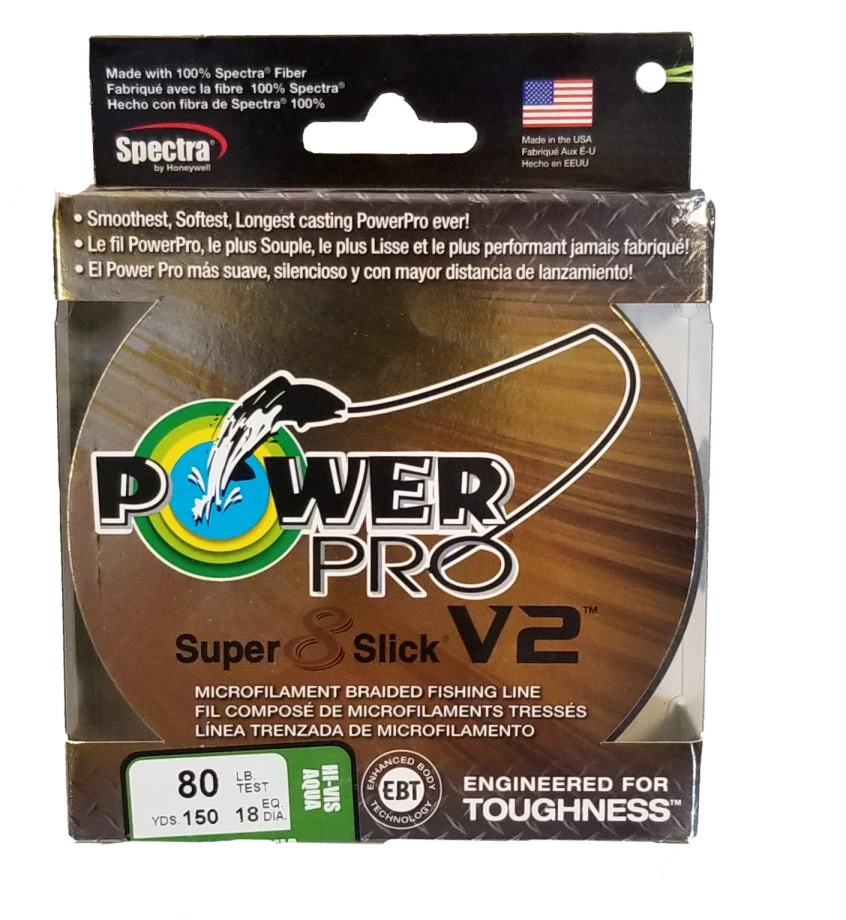 Power Pro Super 8 Slick V2 Hi-Vis Aqua 80 lb 150 yds Braided Fishing Line
