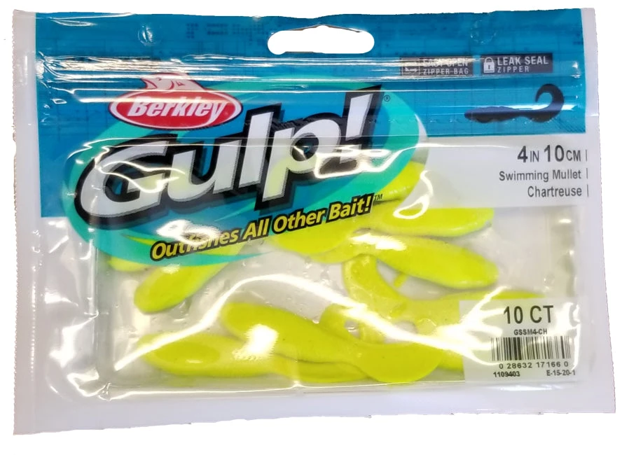 Berkley Gulp! Swimming Mullet Chartreuse 4″ 10pk