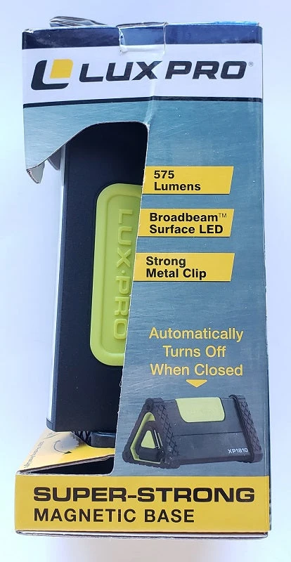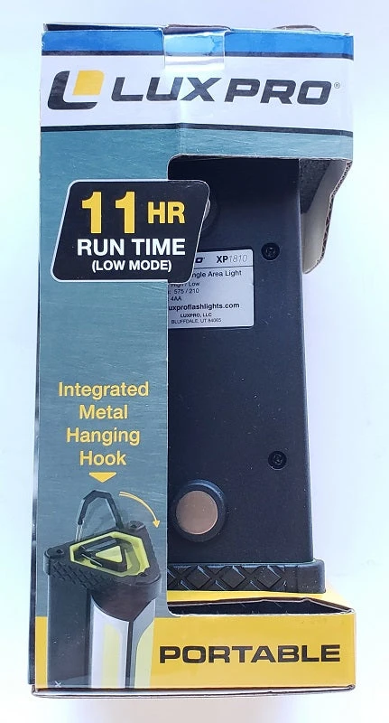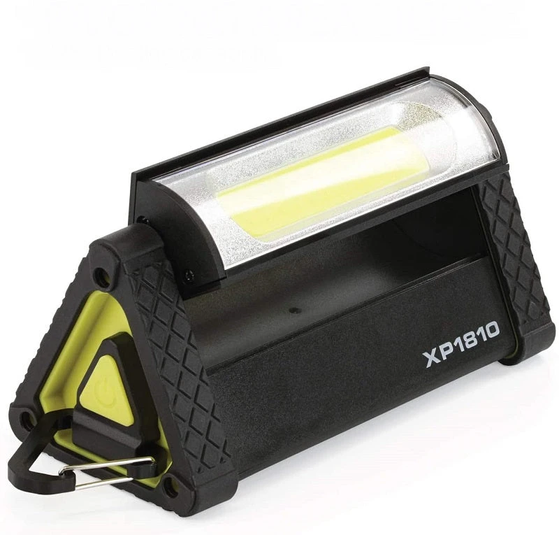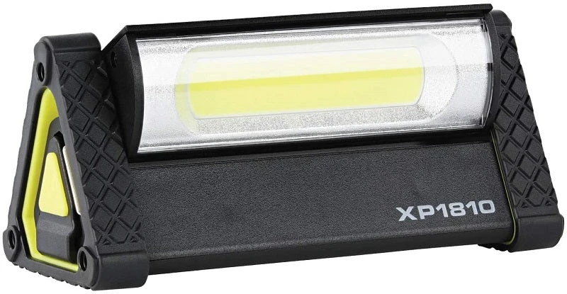 This pro series directional pivoting battery-powered LED work light is very bright with an incredible 575 lumens on high mode and 210 lumens on low mode. It has 2 modes: high and low, which will run for an incredible 11 hours when it’s on low. This triangle work light features 2 powerful magnets at its base and the corners are protected with gripping rubber for secure placement. It also has a collapsible hook for convenient hanging and a rubberized handle to provide a comfortable grip. The XP1810 area light is designed with a 225° pivoting broadbeam light that automatically turns off when it’s closed for both ease of use and extended battery life. It utilizes 4 AA batteries, which are included for immediate usage. Light up work or campsite with this area light. The XP1810 has an incredible runtime and is ultra-bright; making it perfect for lighting up fields, garages, worksites, campsites, and outdoor sporting events.