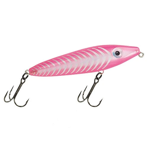 Features natural 3-D eyes, fish-catching finishes and premium black nickel hooks. The C85MR has that bright, reflective, luminescent insert that attracts fish. With a twitching retrieve, this Top Water Dog darts from side-to-side, calling in viscous strikes. Precision weight design allows Pro Dog JR. to cast long distances and walks with ease. The perfect “search bait” when probing the flats.