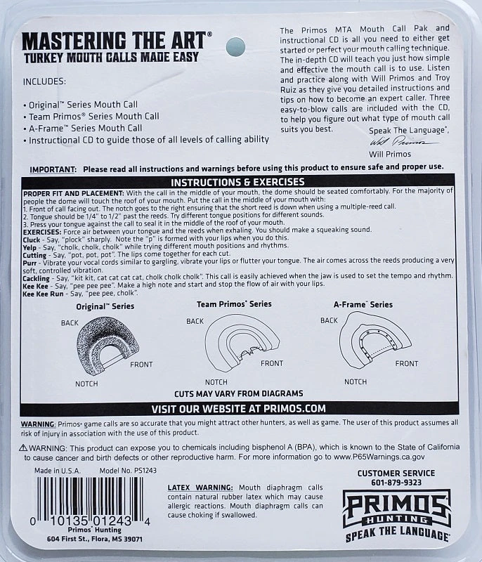 Primos Master the Art Mouth Call Pak and Instructional CD PS1243