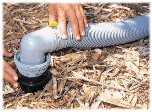 - Securely connects RV sewer hose to dump station