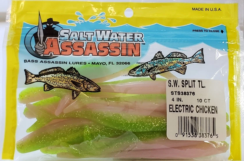 SaltWater Assassin Split Tail Electric Chicken 4″ 10pk