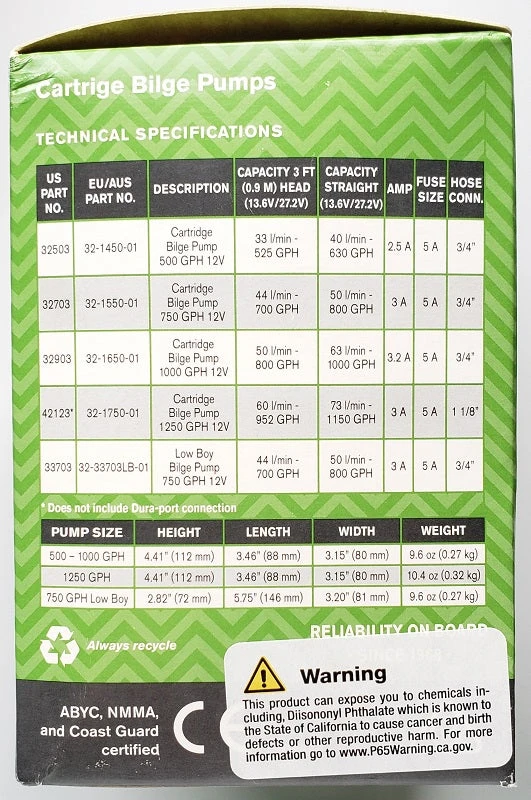 SPXFLOW Johnson Pump 750 GPH Cartridge Bilge Pump 32703