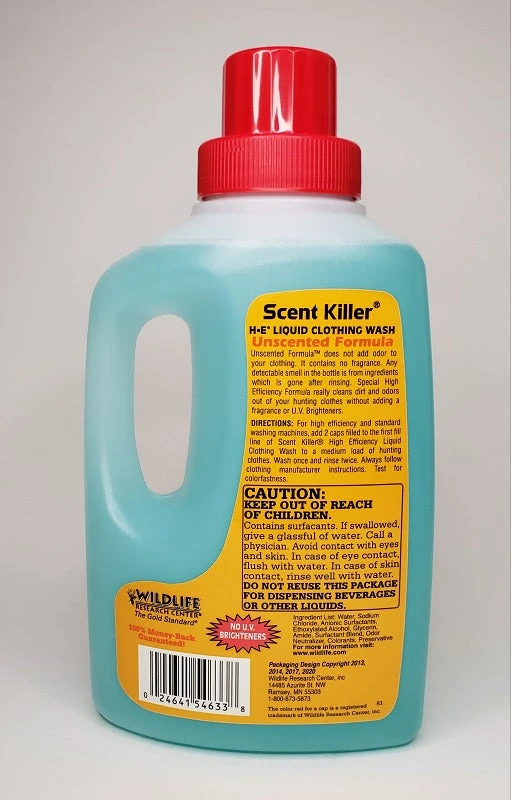 The first step in scent elimination is odor free clothes. The liquid clothing wash is a really good unscented formula for hunters who prefer a liquid instead of a powder. It is a different formula from the powder. The product really works great at cleaning and removing human odor. It is also a high efficiency formula that rinses very clean and contains no U.V. brighteners.