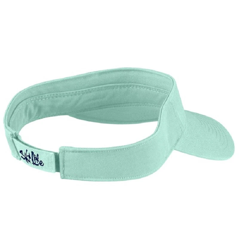 The Salt Life Red White and Bluefin visor is made from faded heavy washed twill fabric and has an adjustable velcro backstrap. This visor features printed logo decoration. One size fits most.